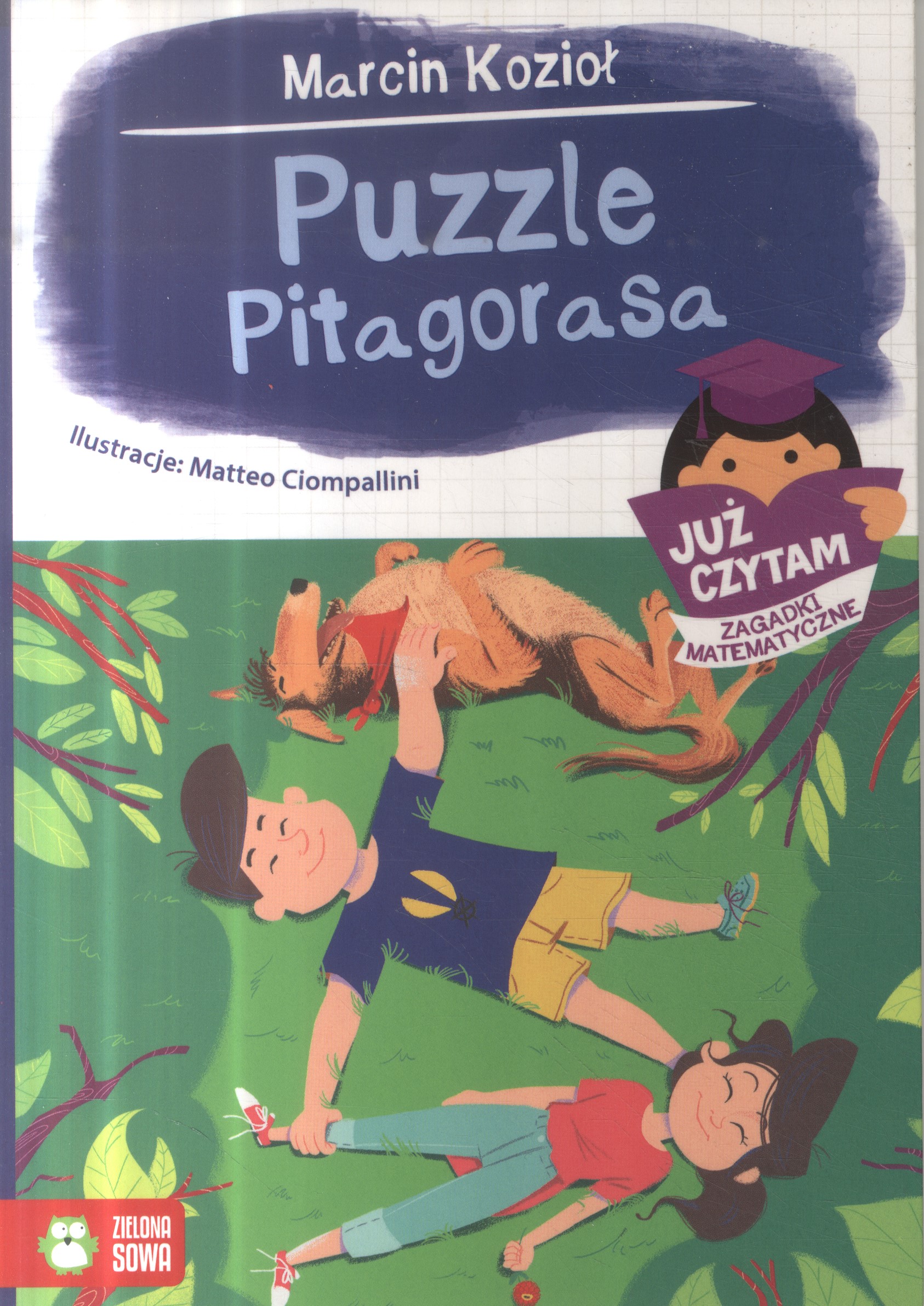 Puzzle Pitagorasa / Marcin Kozioł ; ilustracje: Matteo Ciompallini. - Wydanie II. - Warszawa : Wydawnictwo Zielona Sowa, copyright 2020. - 47, [1] strona : ilustracje ; 21 cm.