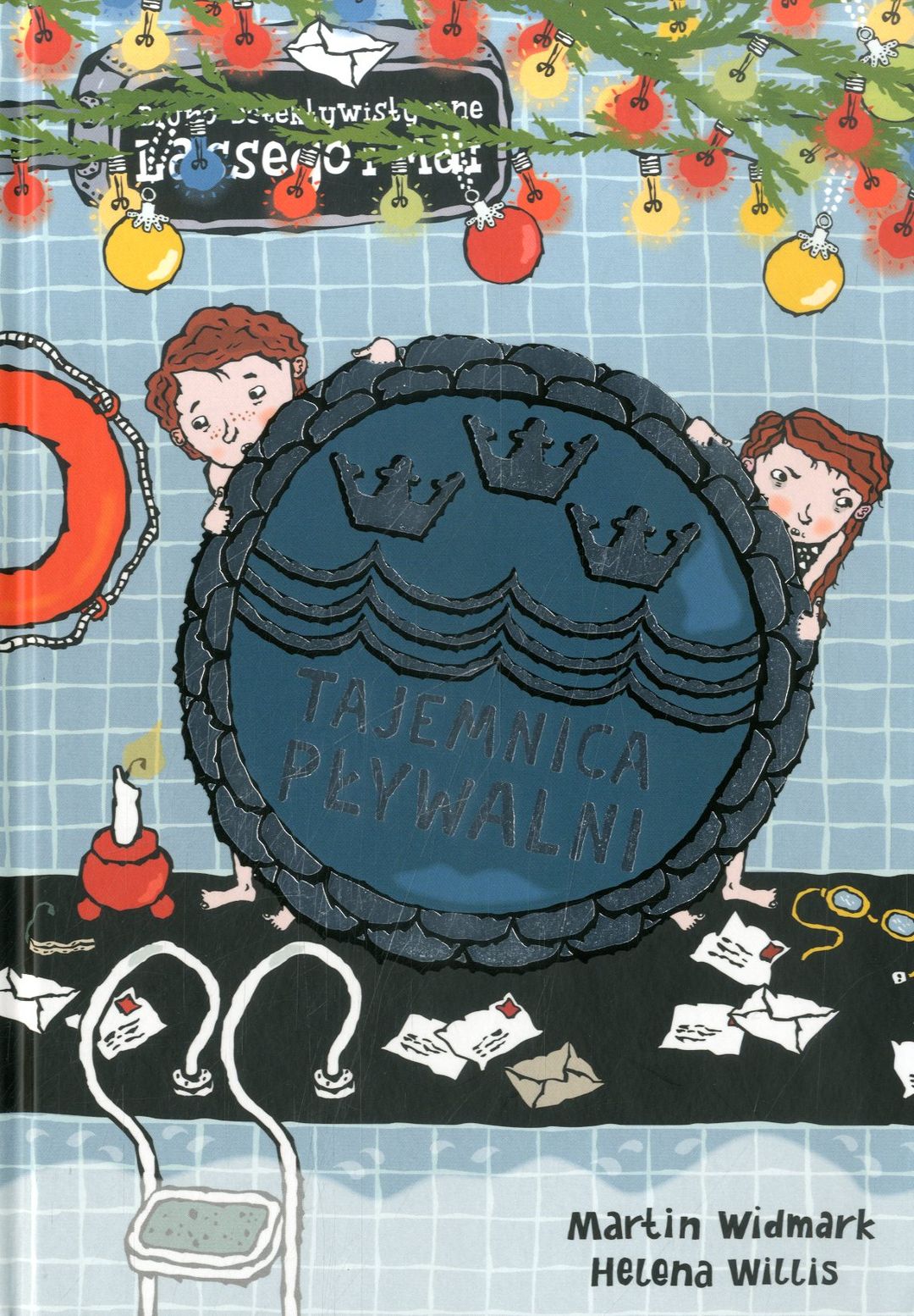 W święta Bożego Narodzenia w Valleby odbywają się zawody pływackie. Pływalnia pęka w szwach. Wszyscy chcą zdobyć odznakę pływacką oraz obejrzeć skoki do wody mistrza olimpijskiego Rackego Bolindera. Gdy jednak ten, po spektakularnym skoku z trampoliny, nie wynurza się z wody, a chwilę później okazuje się, że z szafek w holu poznikały kosztowności, Lasse i Maja rozumieją, że będą mieli pracowite święta... Kolejne tytuły serii Biuro Detektywistyczne Lassego i Mai od kilku lat wybierane są książką roku przez szwedzkie Jury Dziecięce, czyli niemal 50 000 głosujących dzieci, a tym samym nie schodzą w Szwecji z list bestsellerów. W Polsce również cieszą się dużą popularnością. Akcja książek rozgrywa się w małym szwedzkim miasteczku Valleby i jego okolicach. Główni bohaterowie, Lasse i Maja, chodzą do tej samej klasy i wspólnie prowadzą małe biuro detektywistyczne. Do końca 2013 roku w Polsce ukazało się 19 tytułów: „Tajemnica diamentów”, „Tajemnica hotelu”, „Tajemnica cyrku”, „Tajemnica kawiarni”, „Tajemnica mumii”, „Tajemnica kina”, „Tajemnica pociągu”, „Tajemnica gazety”, „Tajemnica szkoły”, „Tajemnica złota”, „Tajemnica zwierząt” , „Tajemnica meczu”, „Tajemnica szafranu” , „Tajemnica biblioteki”, „Tajemnica miłości”, „Tajemnica kempingu”, „Tajemnica galopu”, „Tajemnica szpitala" i „Tajemnica pływalni". Książki świetnie nadają się dla dzieci, które właśnie zaczynają samodzielnie czytać. Duża czcionka, duża ilość charakterystycznych czarno-białych ilustracji oraz trzymająca w napięciu akcja sprawiają, że nawet najbardziej oporni mali czytelnicy czytają je z wypiekami na twarzach. Polecamy również „Brązową księgę”, „Srebrną księgę” oraz „Złotą księgę”, które pełne są detektywistycznych łamigłówek, rebusów, zagadek i szyfrów - a wszystko w scenerii miasteczka Valleby i z udziałem bohaterów serii. Z kolei w „Pamiętniku detektywa” zbierać można rysopisy i odciski palców kolegów i koleżanek. [www.lubimyczytac.pl].